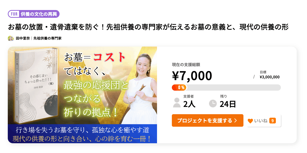 このプロジェクトは「お墓」や「先祖供養」をテーマにしていることもあり、葬儀業、墓石販売、霊園関連事業、終末期の介護事業をされている事業者様にも想いを届けていきます。