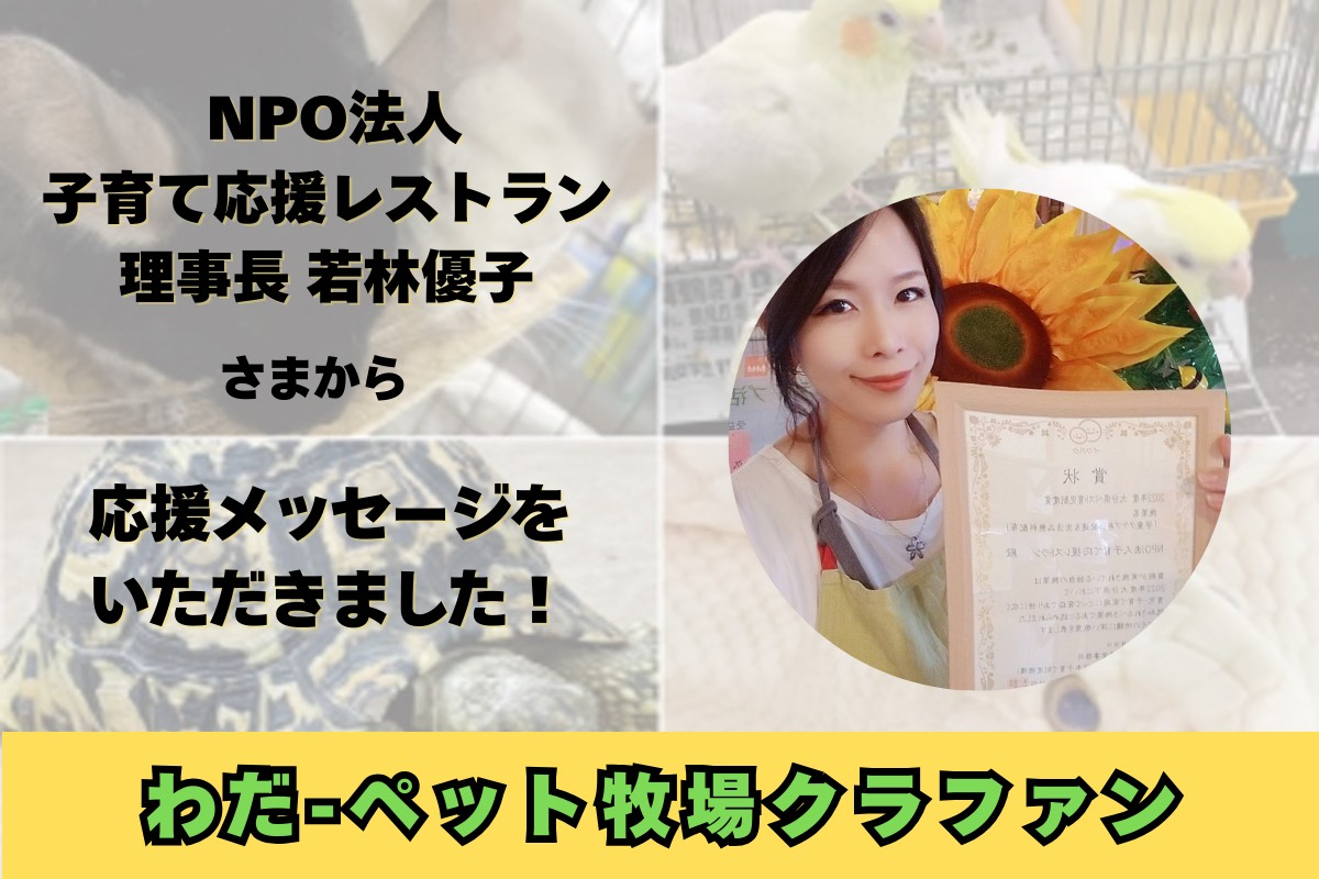 NPO法人子育て応援レストラン 理事長 若林優子 さまから応援メッセージいただきました!