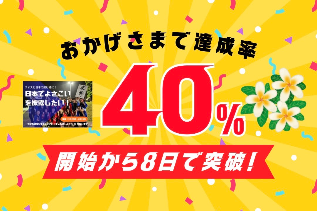 皆様の温かい応援により、達成率50%(40万円)を突破しました!