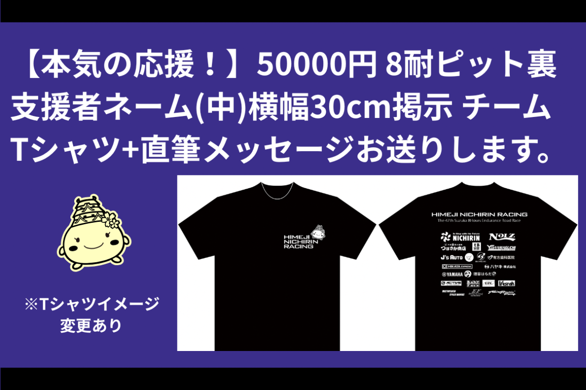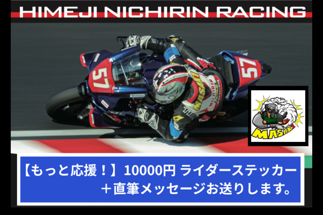 HIMEJI NICHIRIN RACINGは、姫路を拠点に活動する個人参戦のロードレースチームです。ライダー兼オーナーの安達勝紀は、2017年の転倒により右上腕開放骨折を負い、現在も右手に麻痺の後遺症を抱えながら現役を続行しています。2024年・2025年鈴鹿8時間耐久ロードレースSSTクラスで2年連続7位、202Lap完走、ヤマハ勢最上位、2年連続シード権を獲得。年間1000万円以下の予算でスプリント6戦と8耐を戦い、少数精鋭16名体制で結果を積み重ねています。地域の小学校や工業高校での講演活動も継続しています。