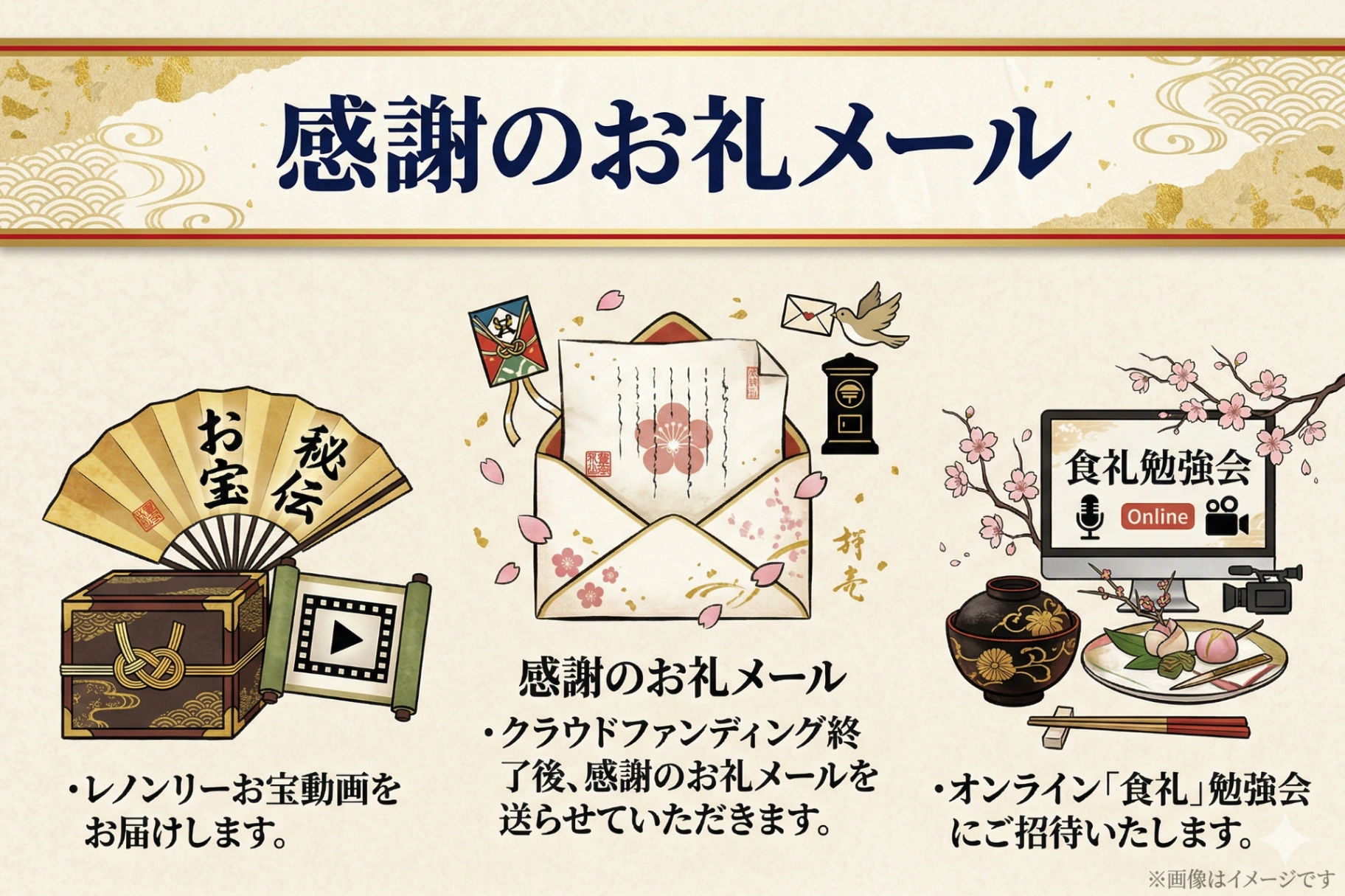 3.リターンには『食礼』オンライン勉強会招待も含まれております。