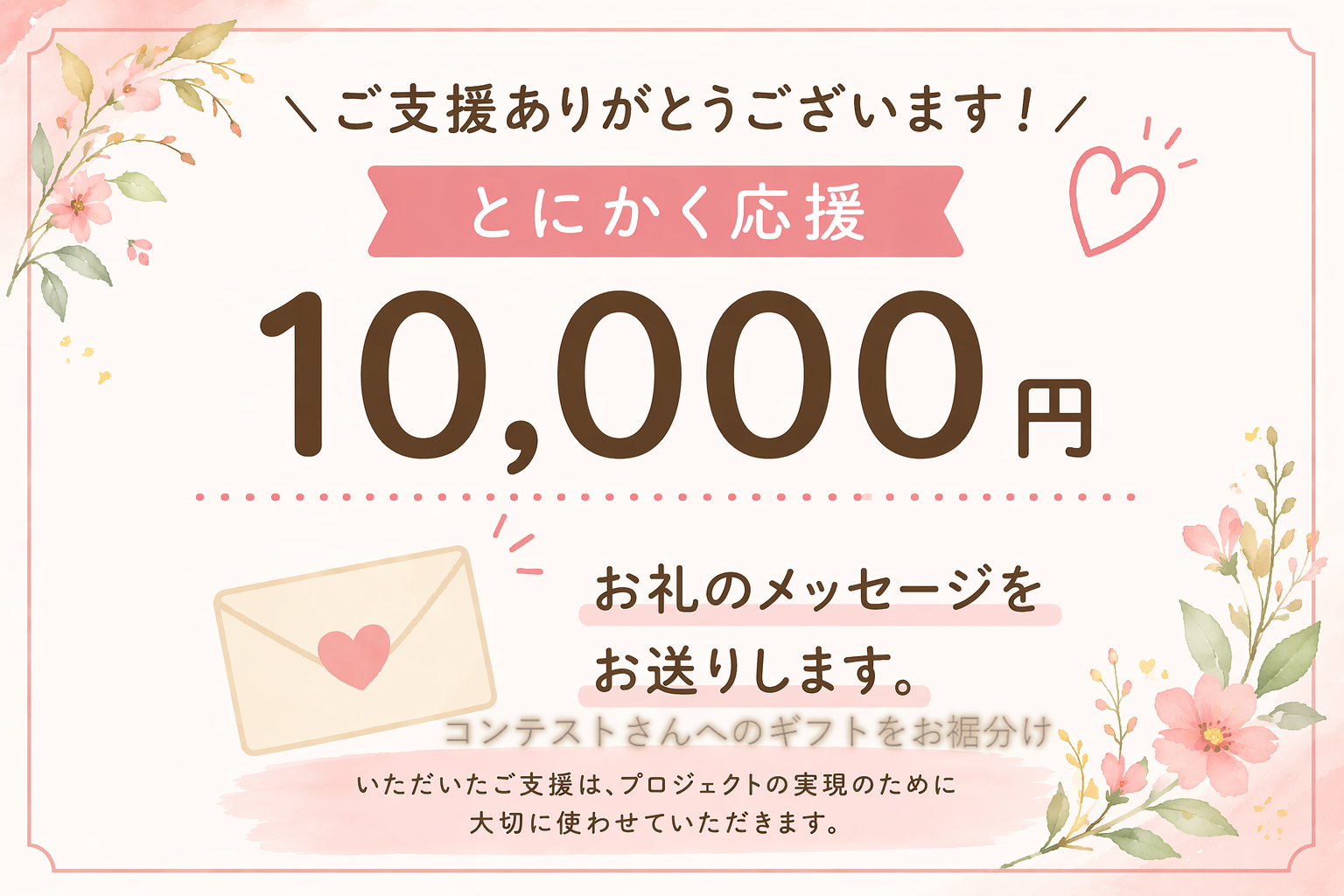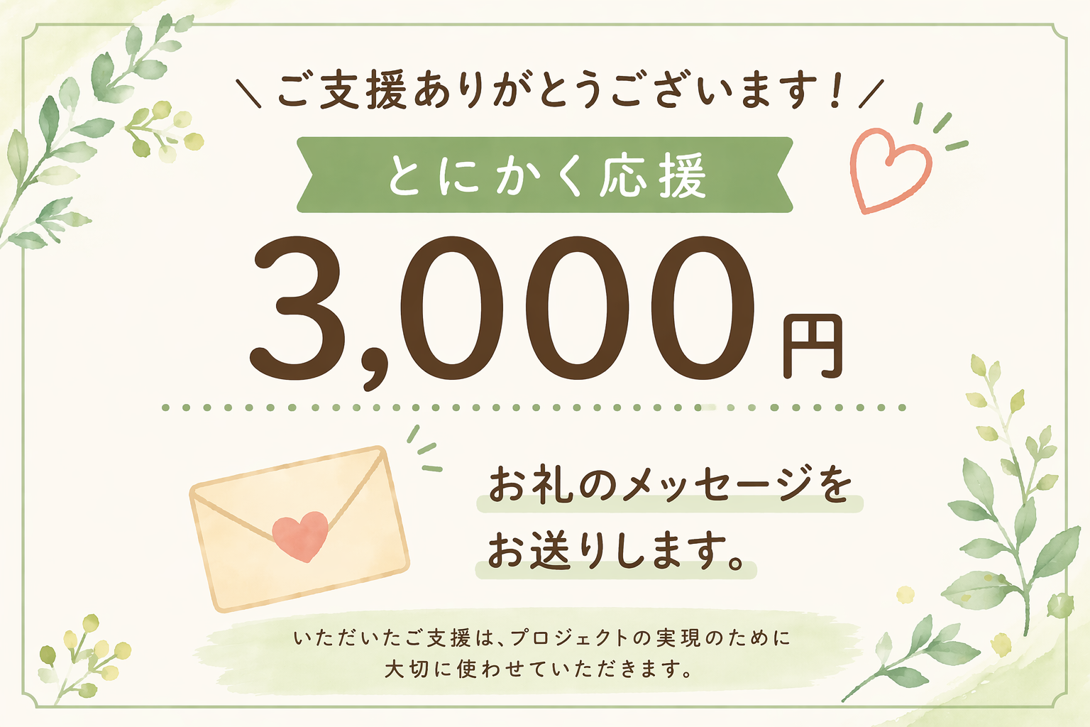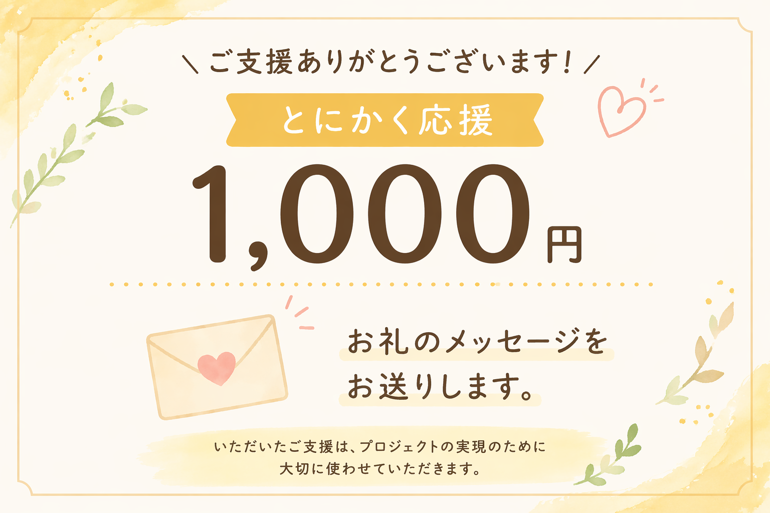 プロジェクト実行者が支援金を全額受け取れるよう、支援者さまからのシステム利用料(220円+決済手数料5%)により運営しています。