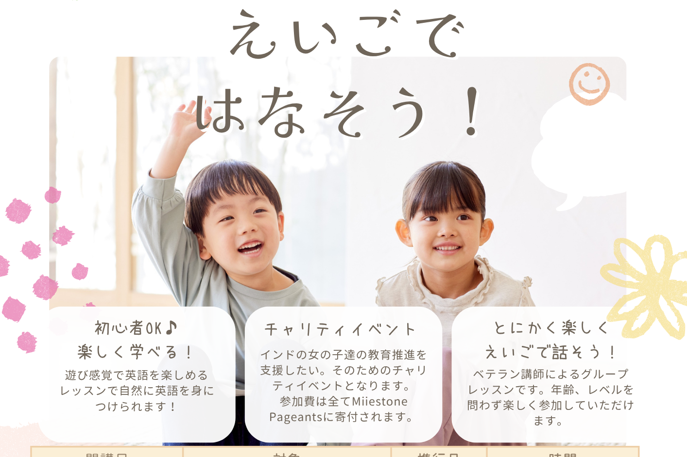 また複数の世界のこどもチャリティーに支援を20年、原爆から学ぶ平和教育、地元のこどもイベント企画・開催を行う。