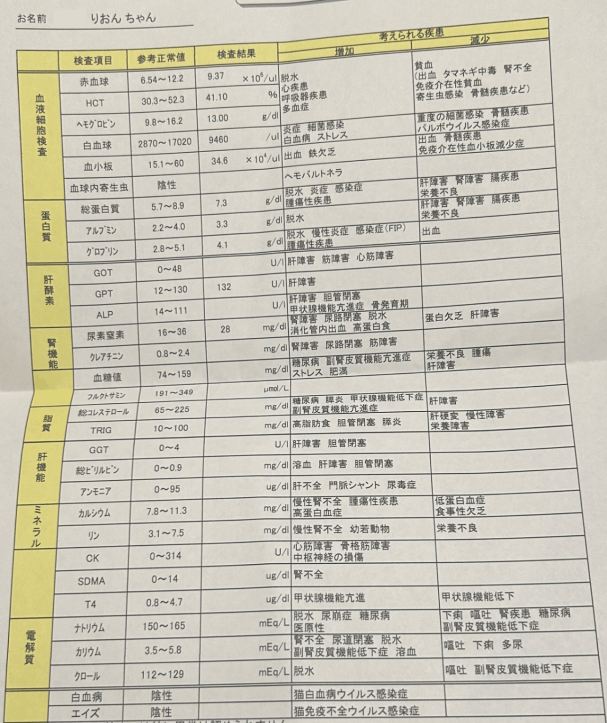 最新の血液検査の結果です。