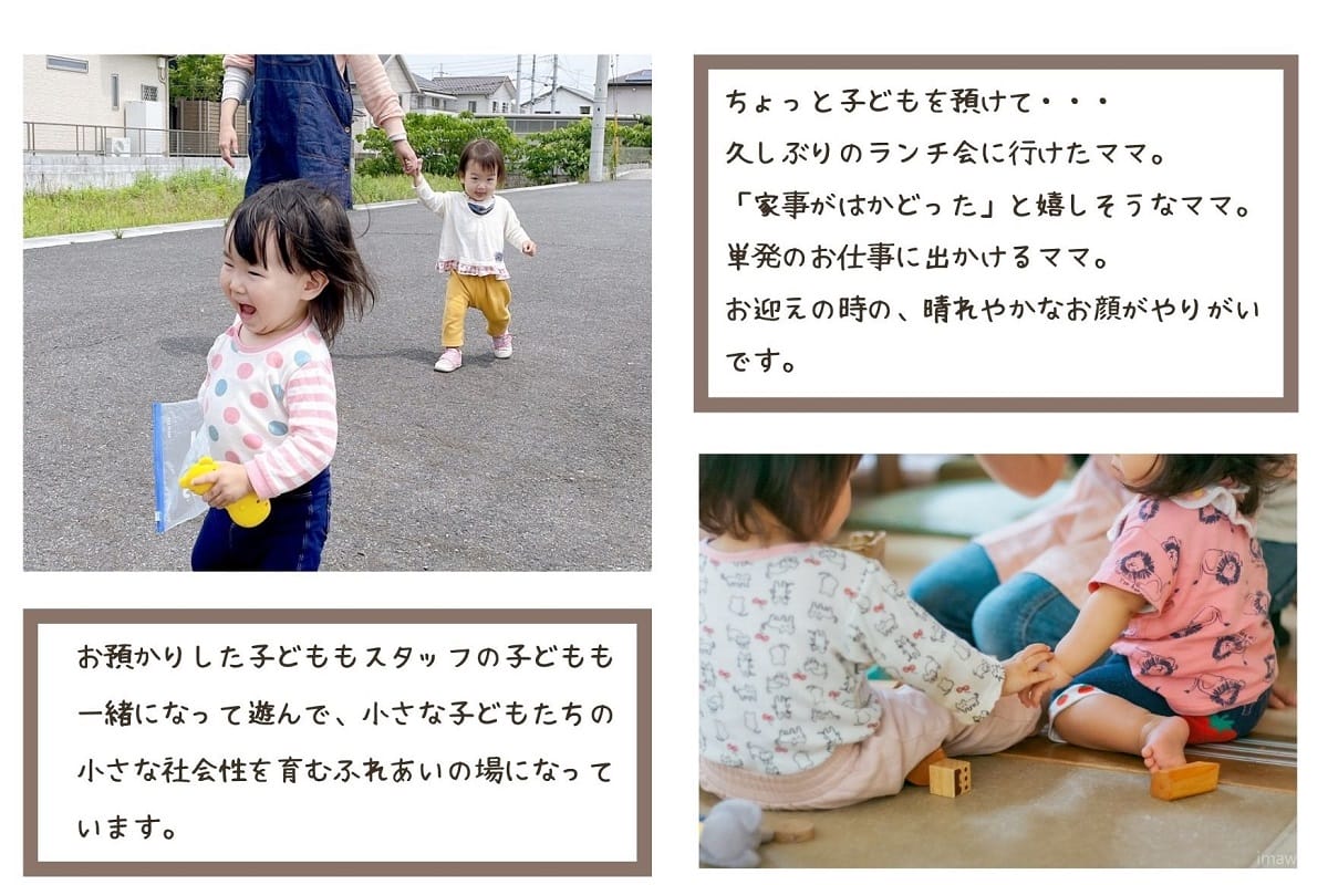 そんな時期に、短時間でも、安心して気軽に子どもを預けられる場所が身近にあるかどうか。それは、切実な問題なのです。