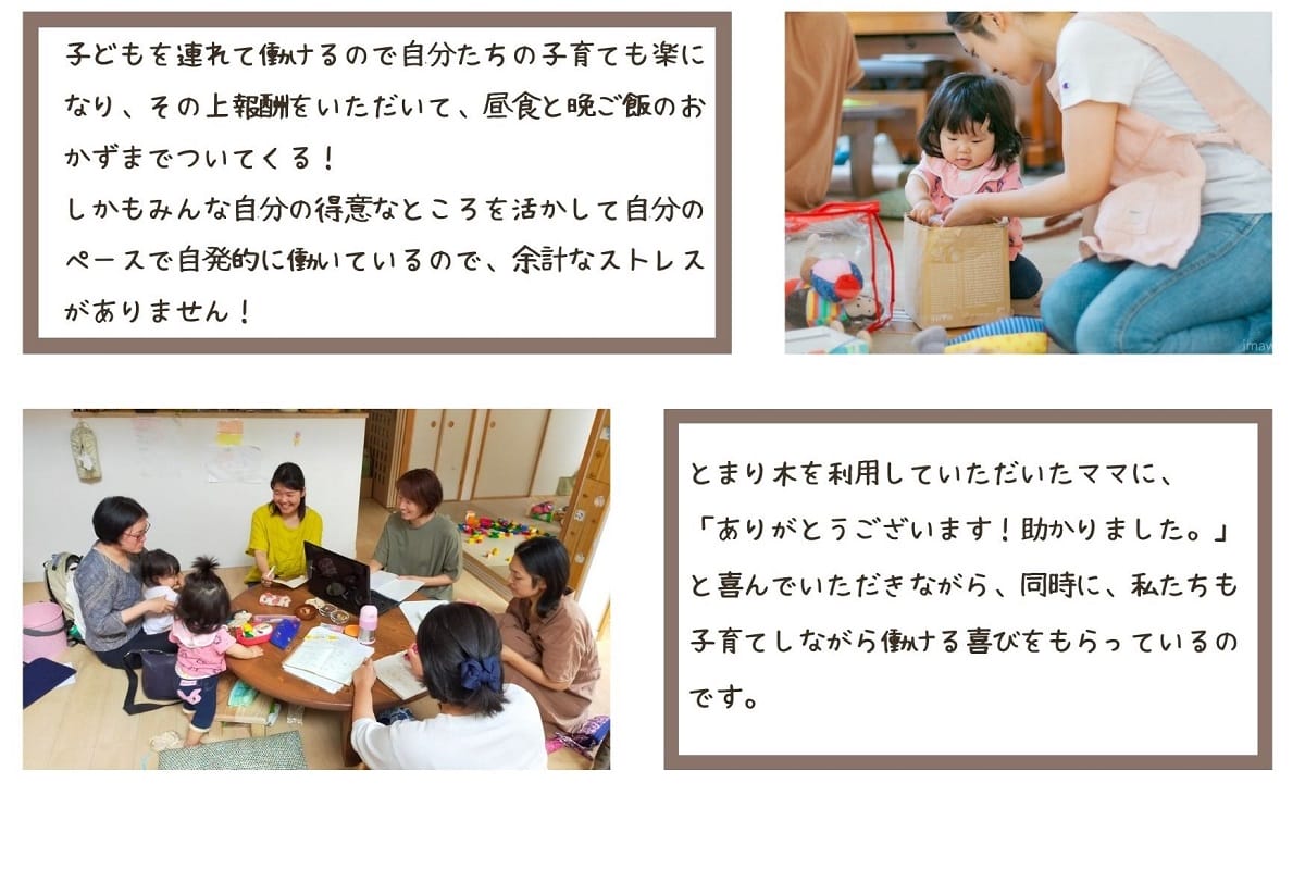 ・1700円リターン「とまり木親子ひろば利用券(ごはん&お味噌汁 付)+託児2時間利用券」を、追加しました。お得なセットになっています。初めて利用される方にお勧めです!プレゼントにも。