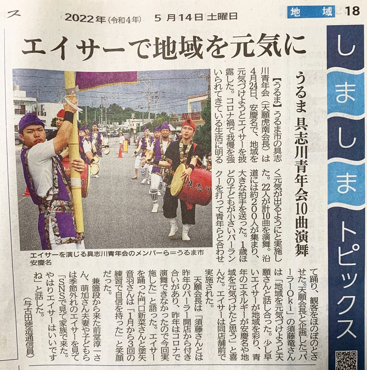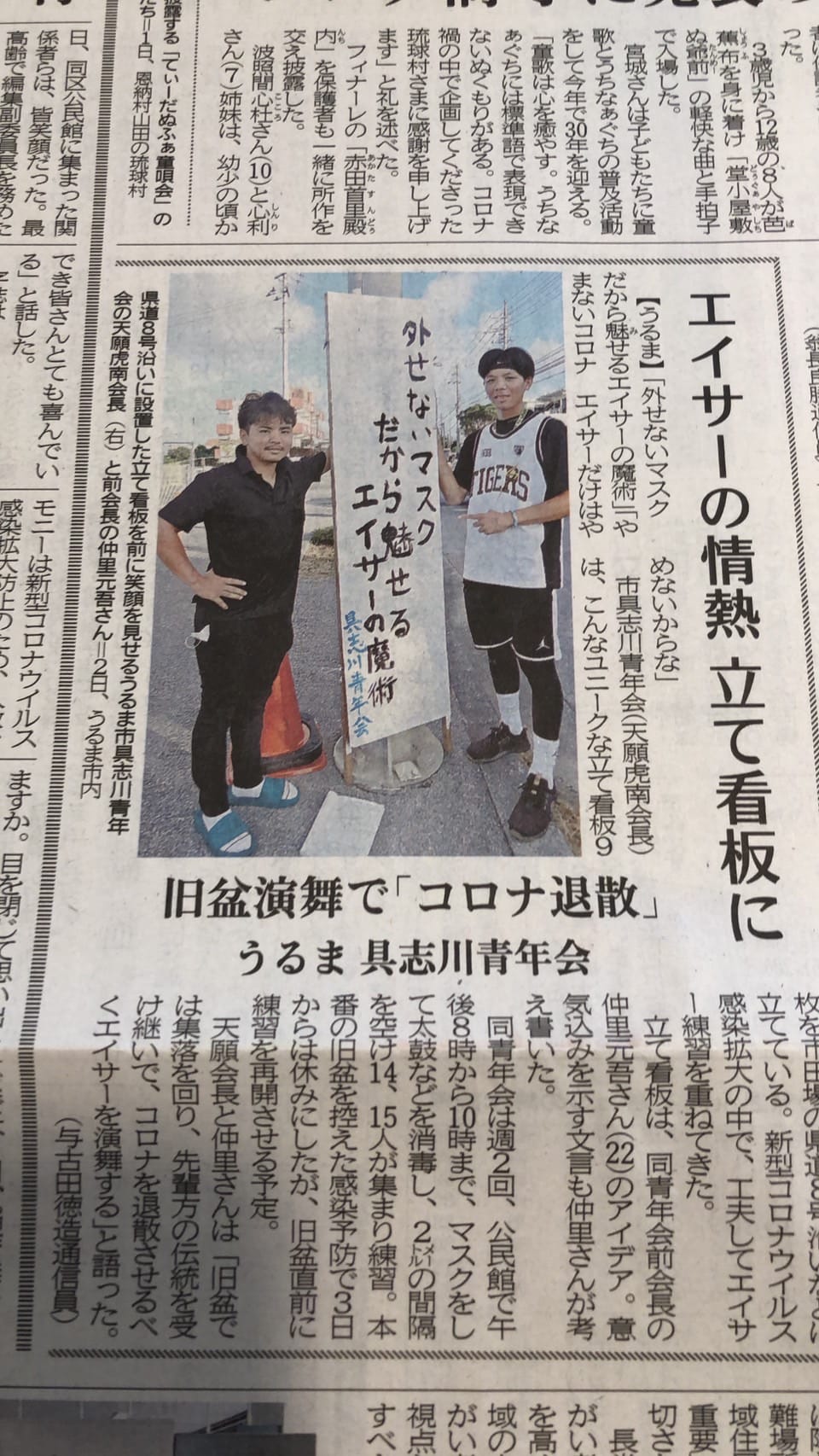 地元の青年会活動やエイサーに参加出来なかったことを後悔しているため、応援します!ぜひ、頑張ってください!(^^)