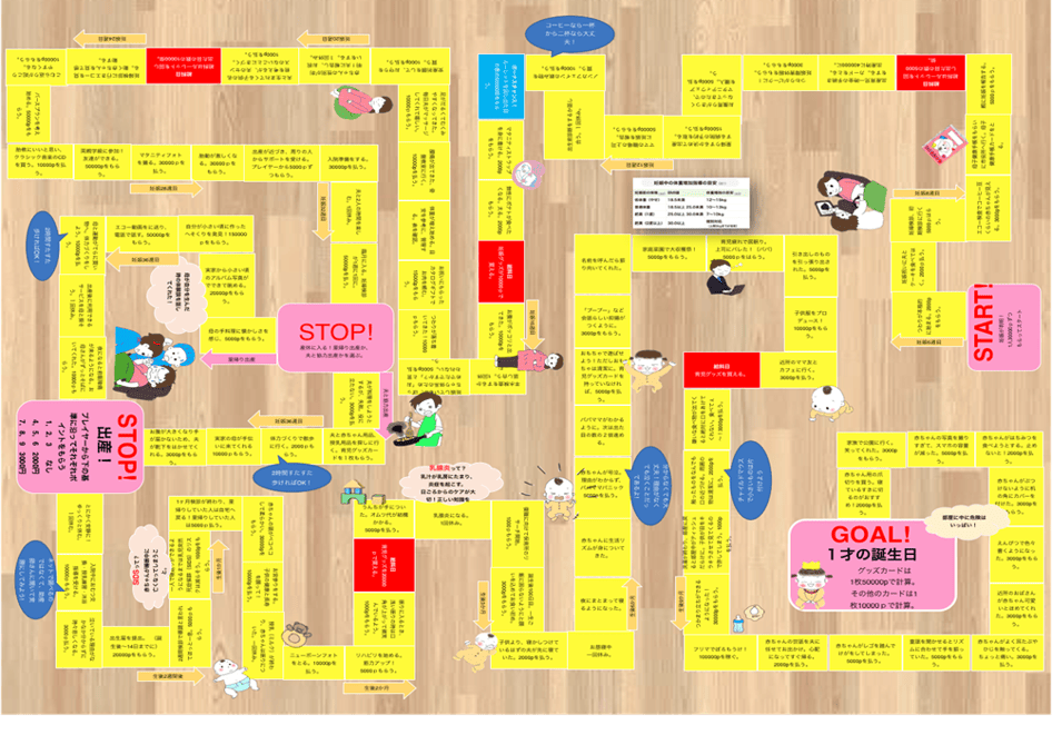 アイデアとして、産後うつの人生ゲームを昨年度参加してくれた高校生と大学生が考えました。