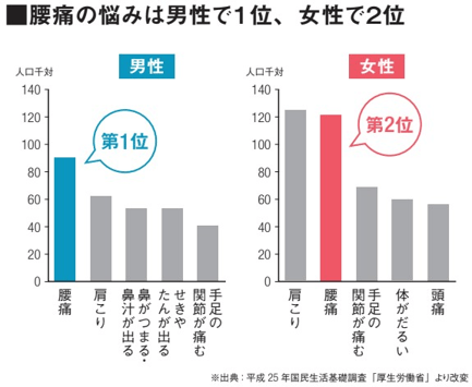 皆さんの周りにも腰痛を訴える方は少なからずいらっしゃると思います。