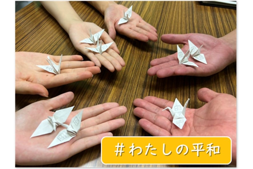 折り鶴を折って、8月9日に#わたしの平和であなたの想う平和な瞬間を折り鶴と共に切り取っていただき、SNSなどでシェアいただけますと幸いです。