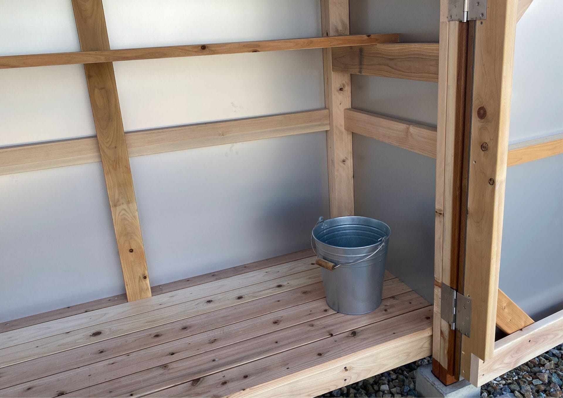 なぜなら外に設置するため、丈夫でなければならないからです。水に濡れても腐らない木材で枠を作り、屋根も必要になります。