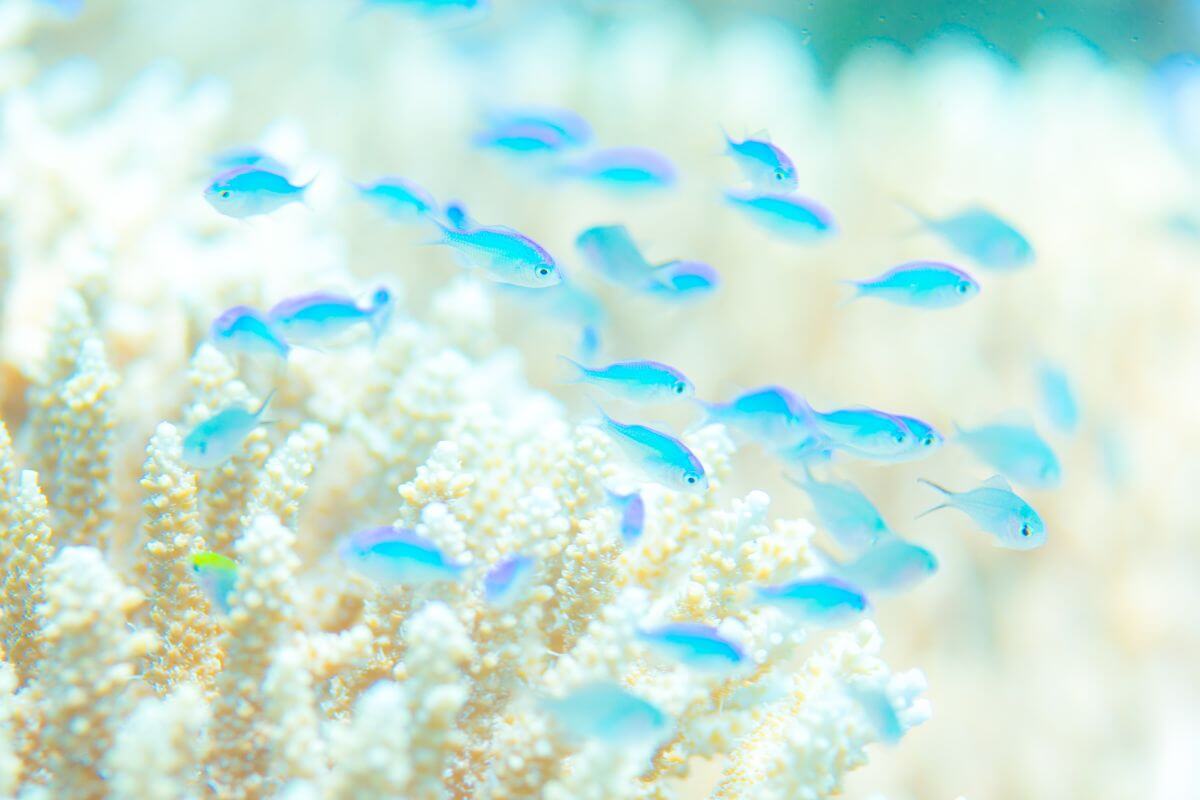 沖縄の海は透明度が高く世界的にも観光地として大変人気がありますが、その息を呑むような美しいマリンブルーの海に潜ると、世界中の色を集めたかのように色鮮やかなお魚たちとサンゴの神秘的な世界を見ることができます。