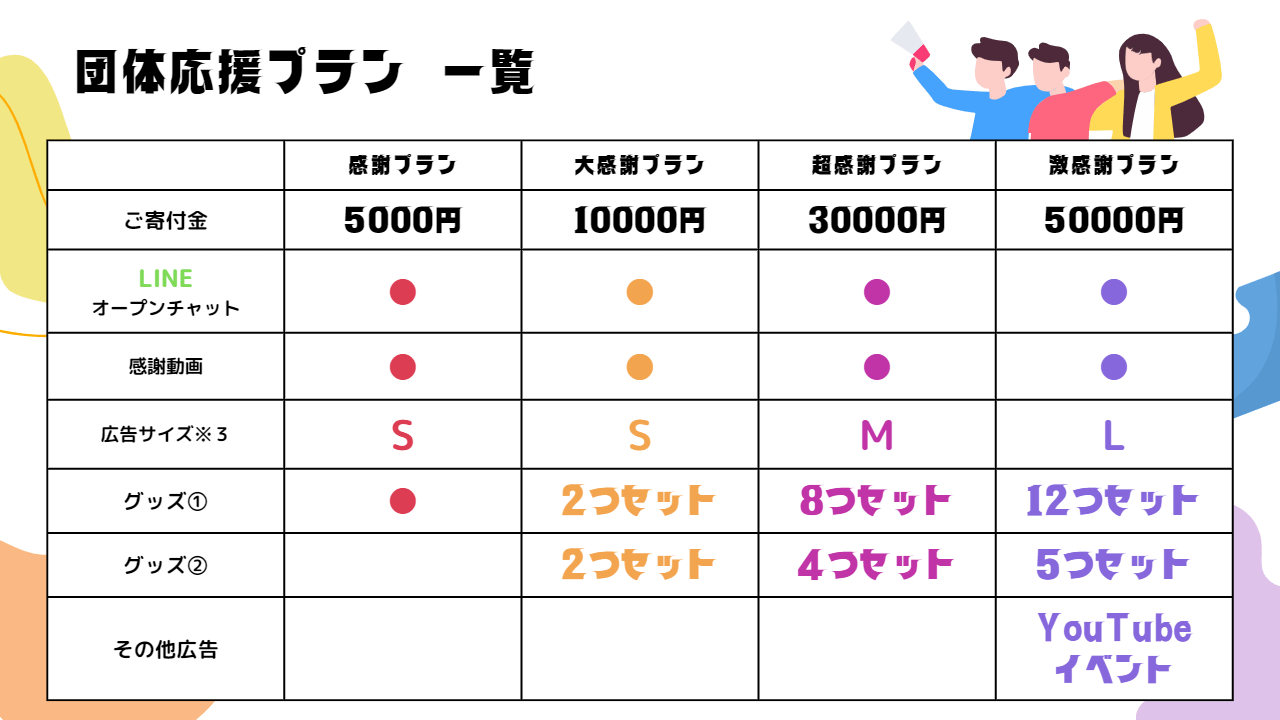 またご支援プランを一覧化してみました!
