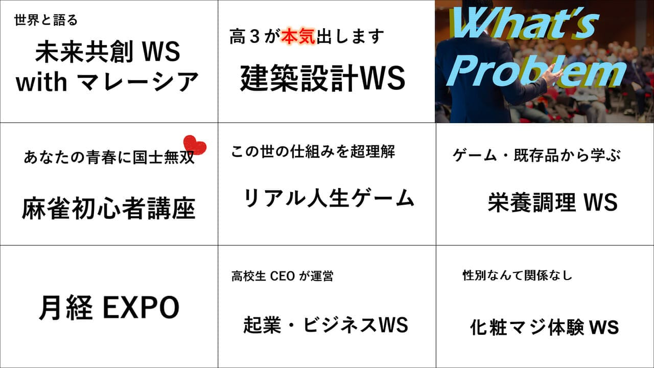 高校生のみなさんが「やりたいこと」を募集して企画から準備に励んでいます!その1つ1つを簡単にご紹介致します。