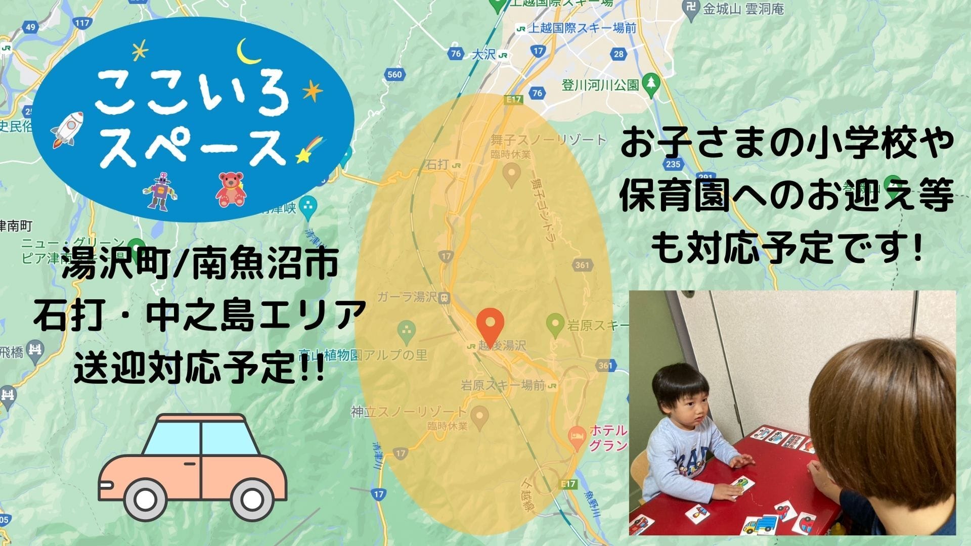 実は湯沢町には、児童発達支援や放課後等デイサービス、日中一時支援など、多様な子どもたちが発達支援を受けられる施設が1箇所もありません。
