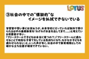 『フリースクールへの社会の見方はまだまだ懐疑的である』ということです。