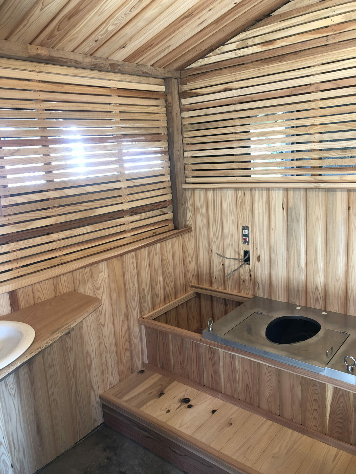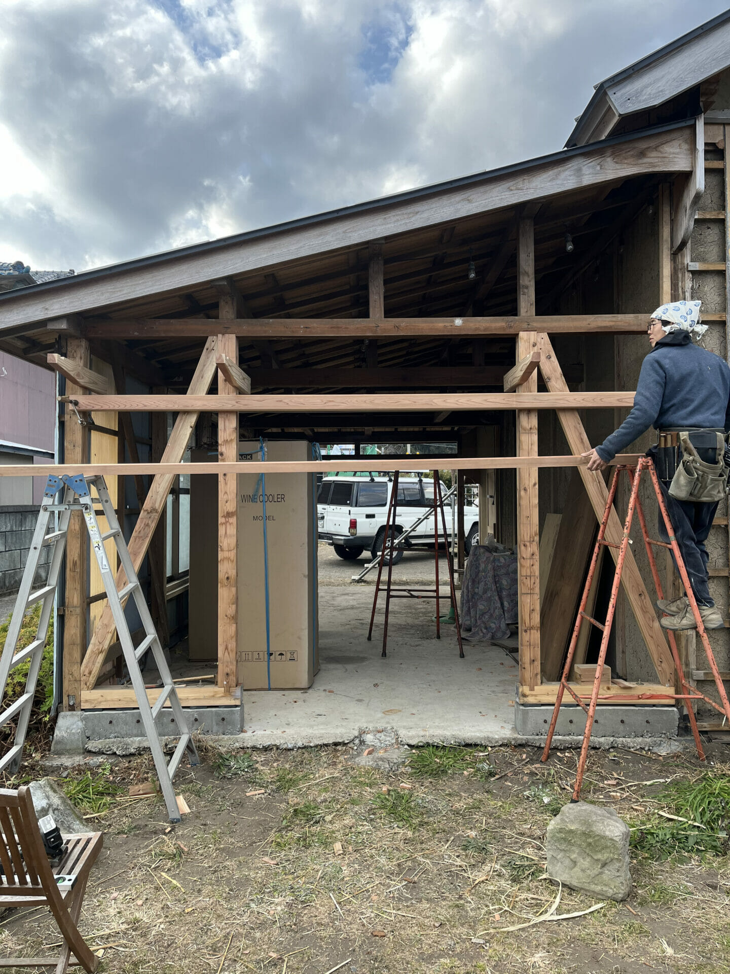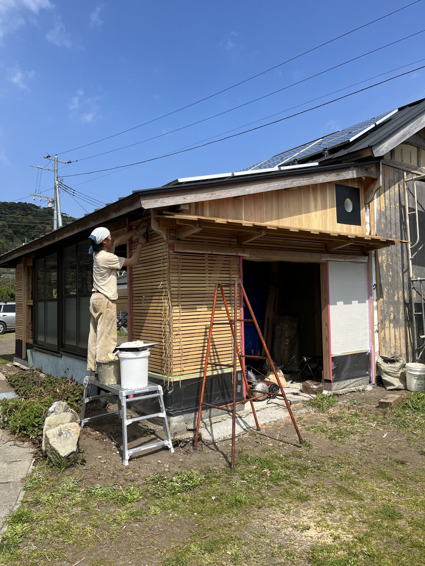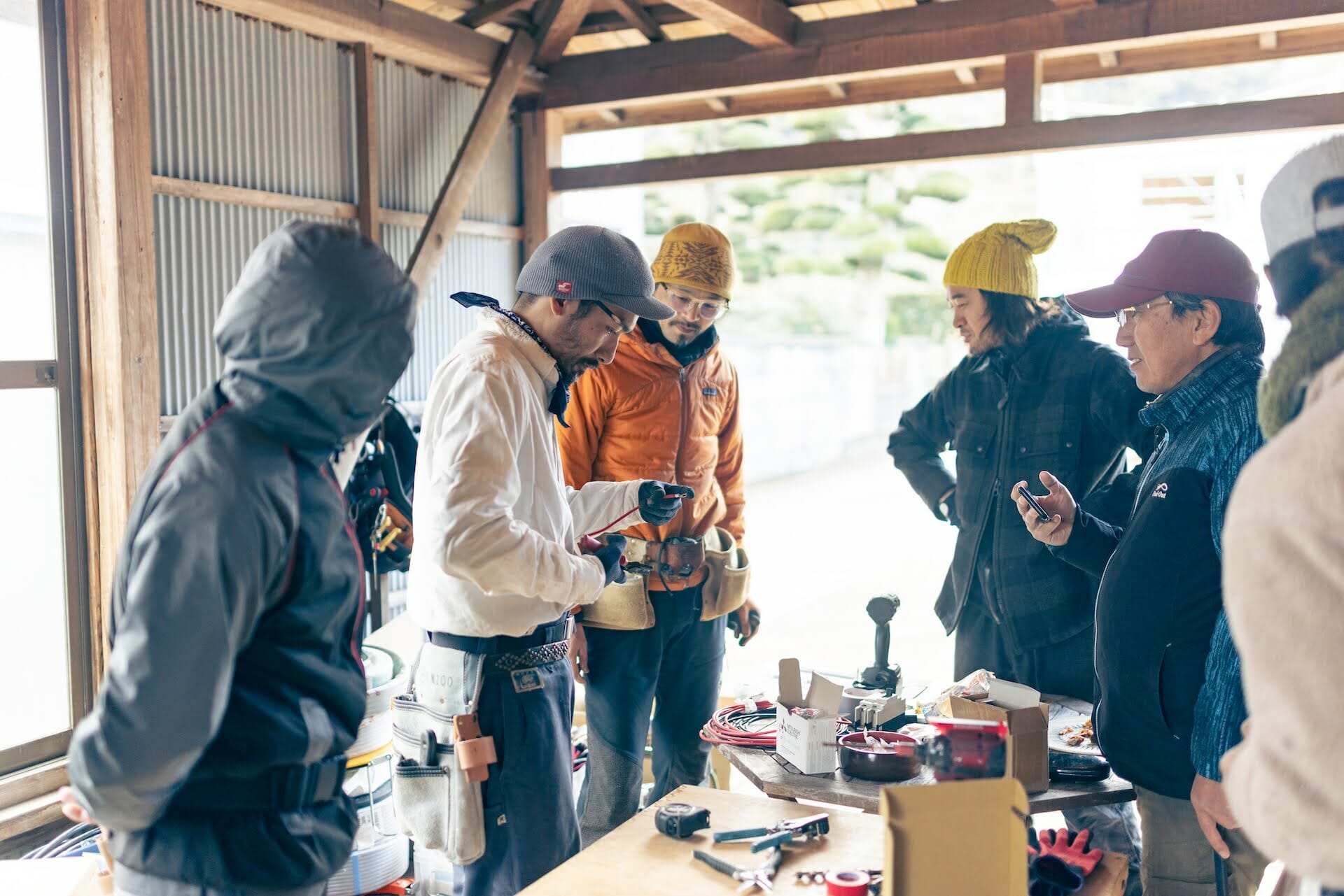 工房に改修する建物は店舗の横にある築80年ほどの古い建物です。太陽光パネルの設置やコンポストトイレのインストールなど、災害時には支援物資の配給や、電気・水・トイレといった最低限必要なものを共有する活動拠点としても利用できるようにデザインして、時間を見つけては改修工事を進めてきました。