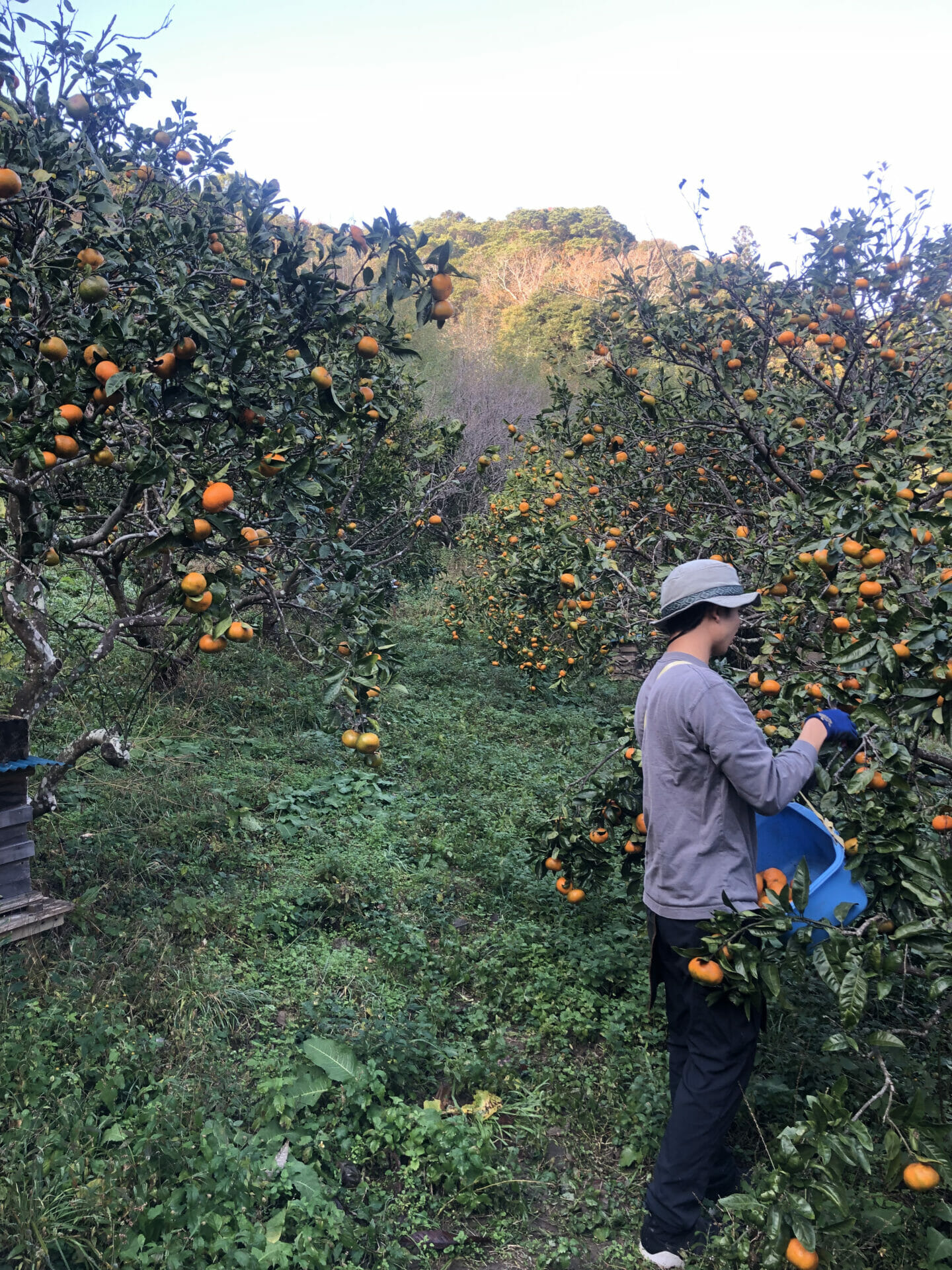 私たちは山の果樹園で蜜柑、八朔、柚、枇杷、梅、栗などの果樹を育てています。今年は新たにレモンやライムの苗木を定植し、少量多品種栽培に加え、ブルーベリー4品種を45本程度育苗し、ブルーベリー畑の整備も進めています。