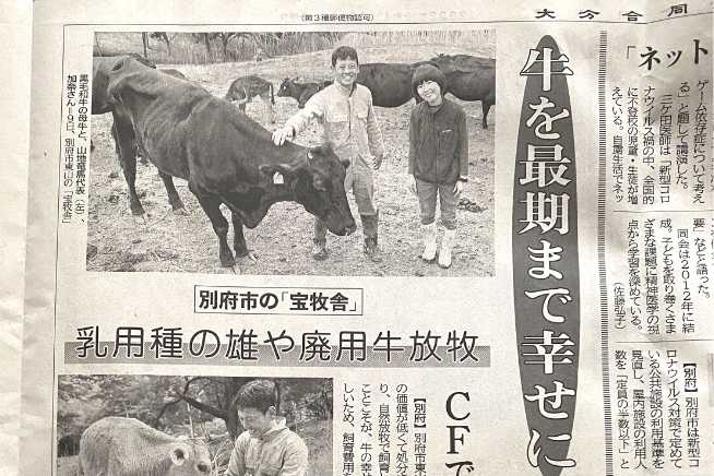 宝牧舎は、大分県別府市の山奥にある牧場で、処分されるはずだった、“ミルクの出ないオスのジャージー牛”、そして“子どもが産めなくなった黒毛和牛の母牛”を引き取り、自然放牧にこだわって、育てています。モットーは、「牛の幸せを考え続ける」です。
