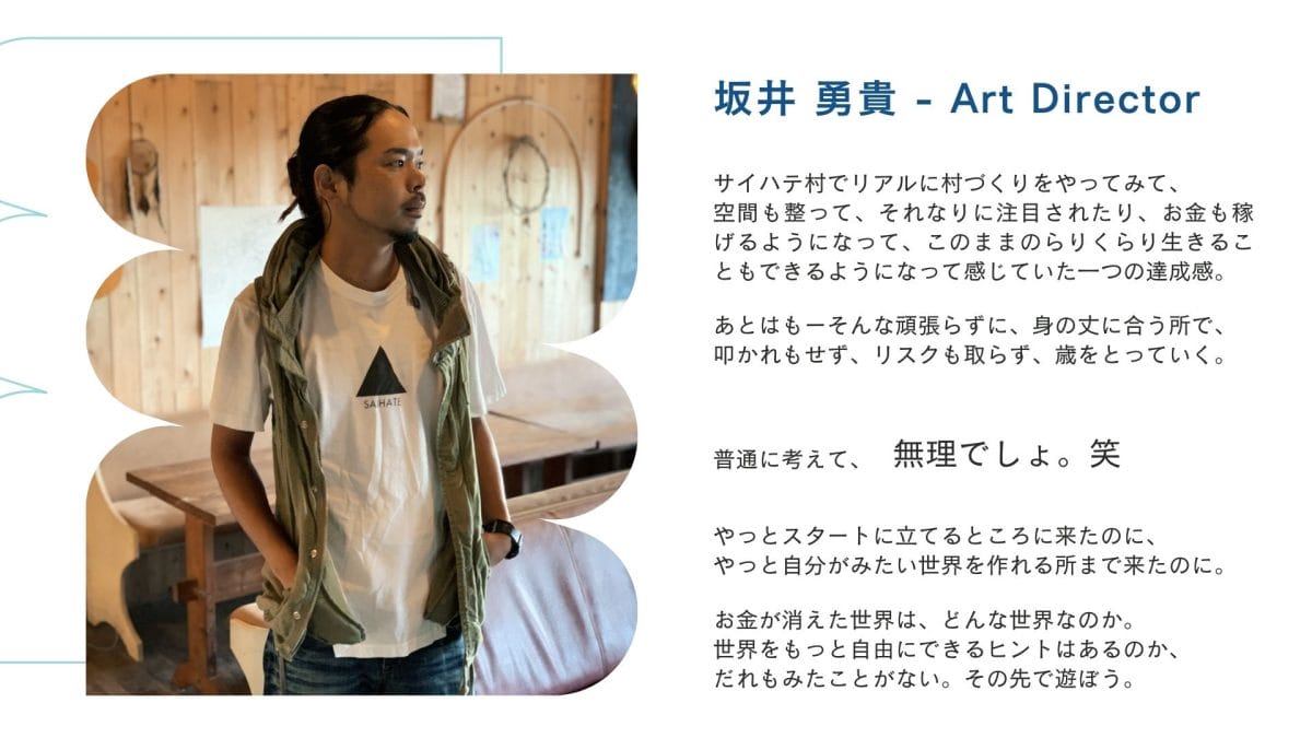 はじめまして!三角エコビレッジサイハテのコミュニティマネージャーであり〝タダの箱庭〟プロジェクト代表の坂井勇貴です。