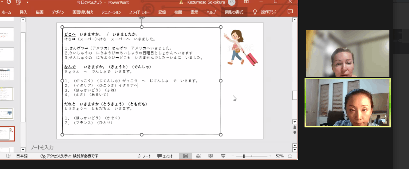 ひらがなやカタカナが少し読めて、日本語文法の基礎部分を学習し始めた時。会話をするときも少しまだ自信のない様子でした。
