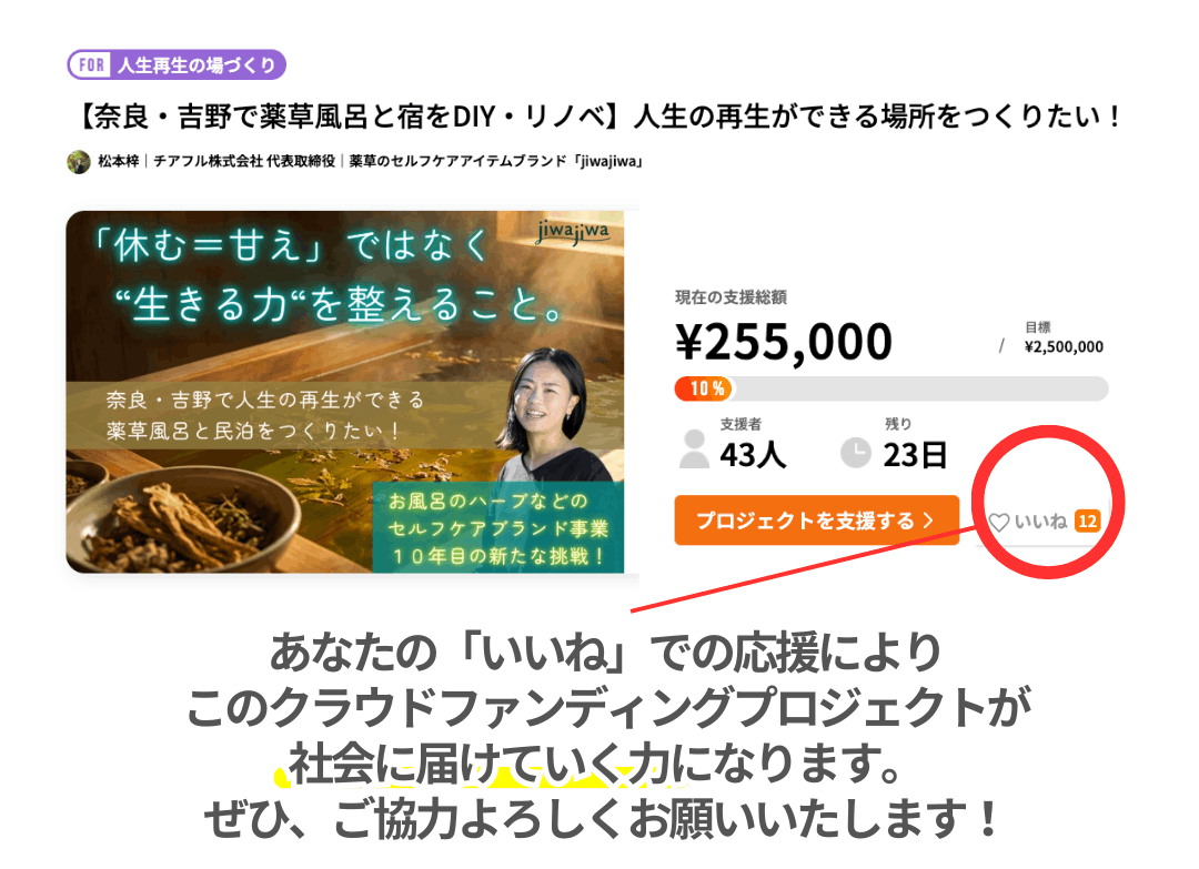 実施中のクラウドファンディングについて、現在43名の方から255,000円のご支援をいただいています。