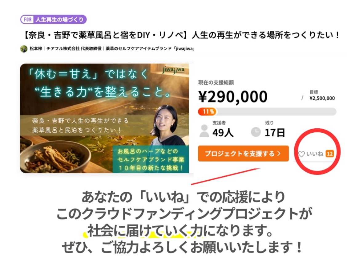 実施中のクラウドファンディングについて、現在49名の方から290,000円のご支援をいただいています。