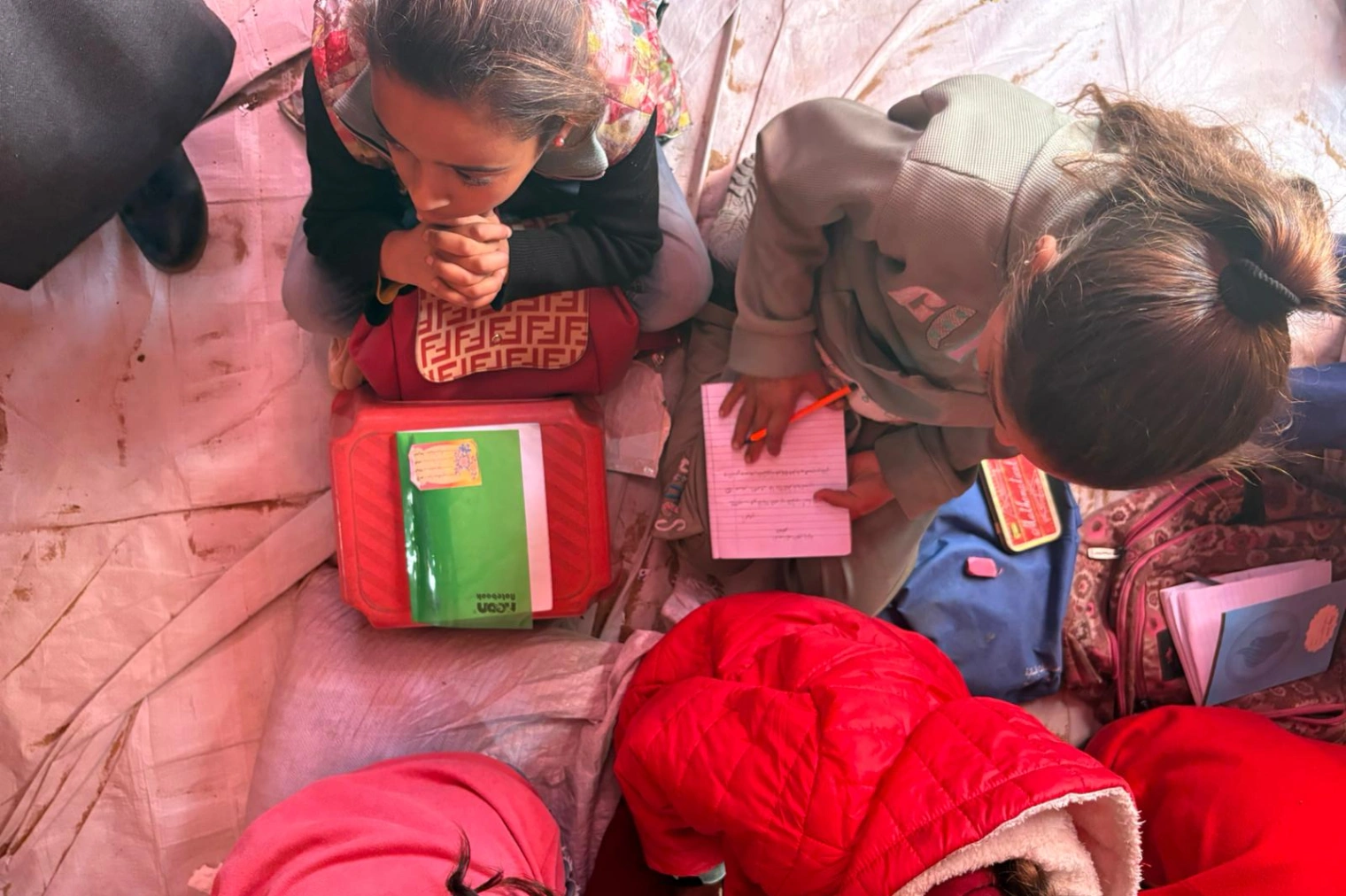 ~雨が降ると休校になってしまいます~アマルさんが訪ねた、ハーンユニスに新しくできたTLS(仮設学習スペース)には、古いテントで作られた7つの教室があります。このTLSを立ち上げた女性は、自分のクローゼットを解体...
