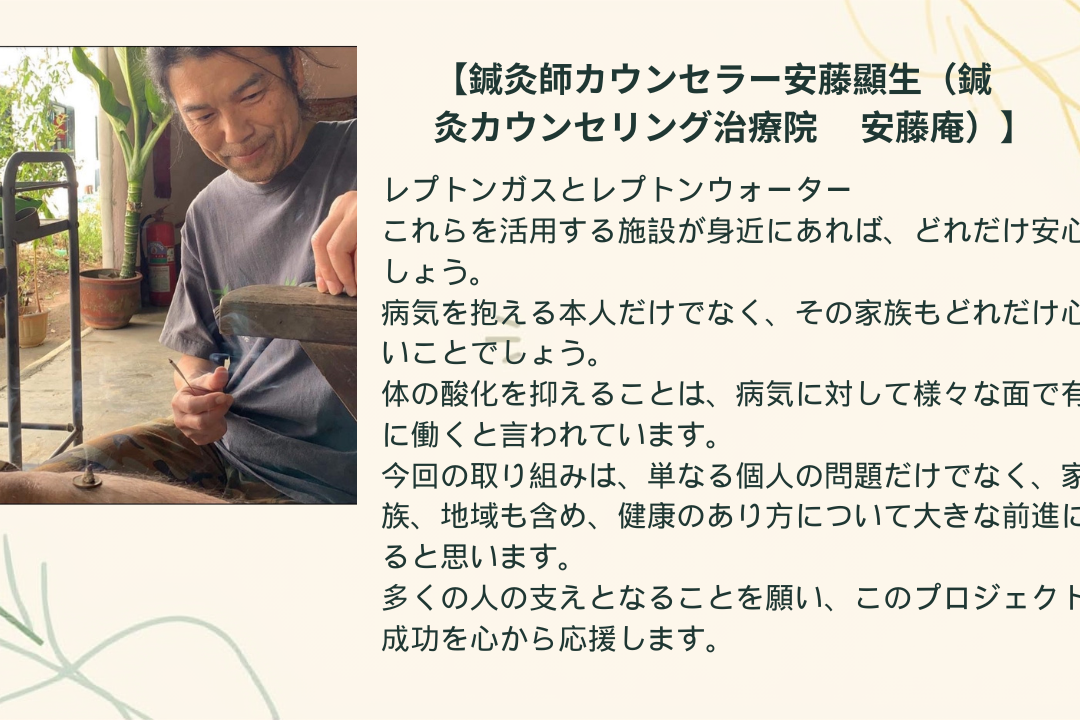 2.支援金で次世代技術レプトン導入の健康施設を作ります!