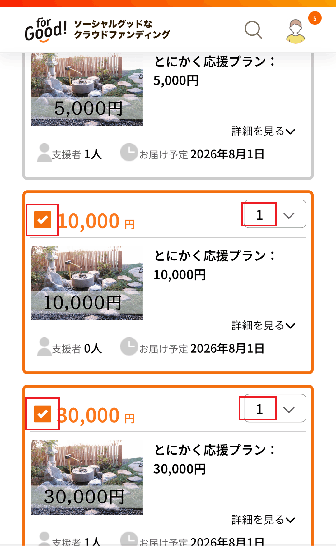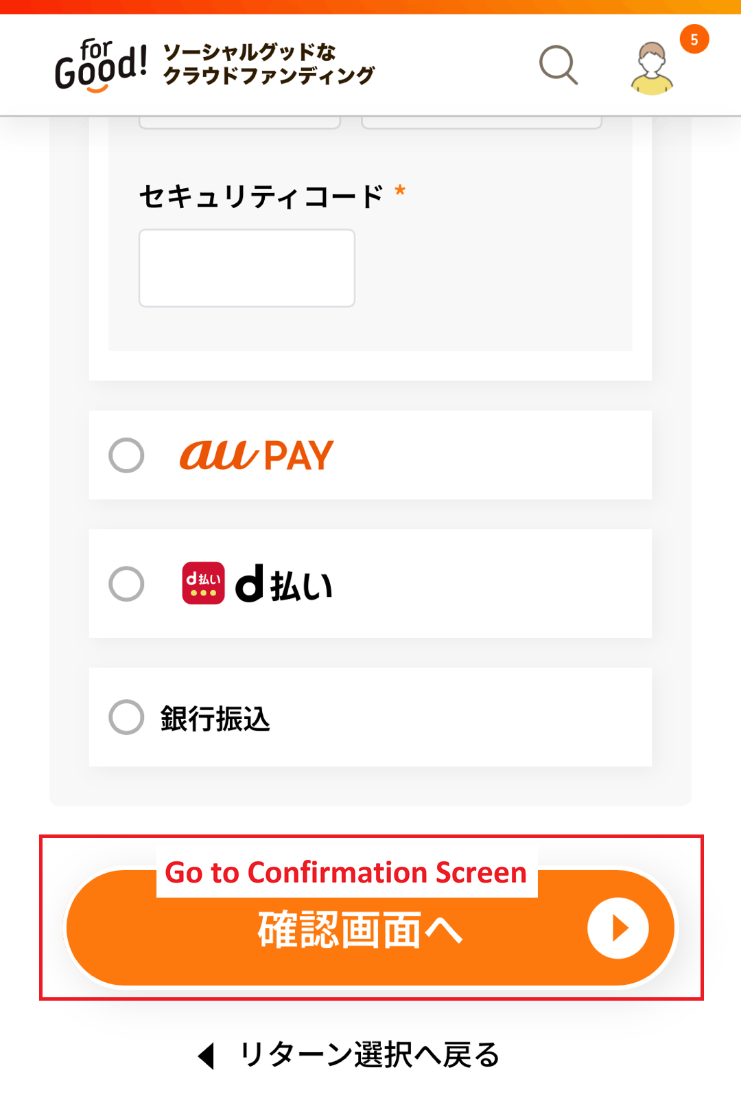 When you arrive at the project page, find the large button プロジェクトを支援する (Support this Project). Check the box of the amount you wish to select. Click the large orange button 情報入力画面へ(Go to Information Input Screen) to continue.
