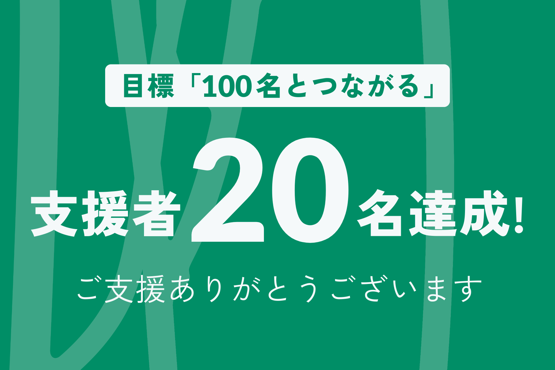 クラウドファンディング開始から、おかげさまで20名の方にご支援いただくことができました!目標の「100人とつながる」に向けて、達成率20%。一歩一歩ではありますが、着実に輪が広がっていること、そしていただ...