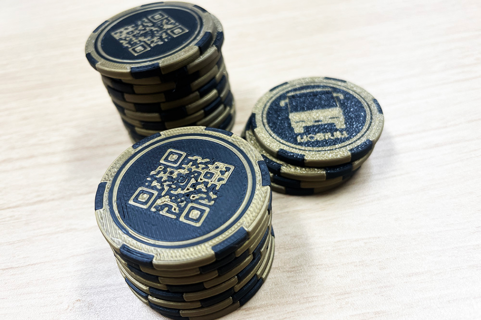 MOBIUMチップができました。材質はプラスチックのコインです。これは応援の証としてお渡しするもので、MOBIUMのイベント時には1000円分のチケットとして使うこともできます。