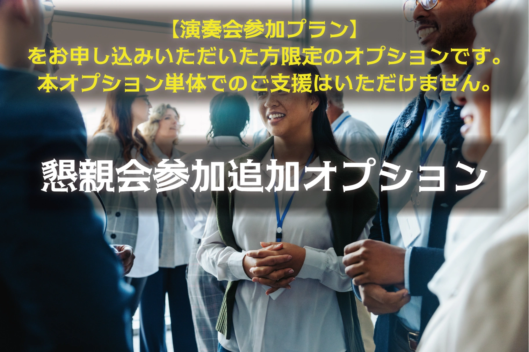 ※「演奏会参加プラン」をお申し込みいただいた方限定の追加オプションです。単体ではご支援いただいても懇親会にはご入場いただけません。