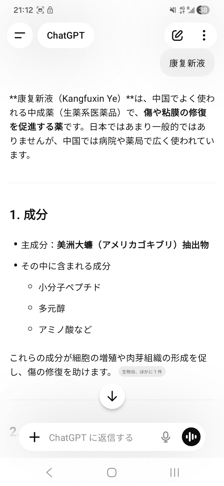 “康復新液”という薬で中国ではよく使われる粘膜の修復のためのお薬だそうで、