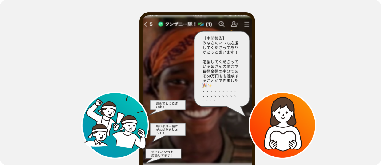 LINEのオープンチャットで支援者へのお礼や活動報告を送り、リアクションをもらうことで仲間のような関係が作れます。